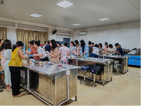 中秋将至,月渐圆,人盼团圆。2025年9月29日,揭阳职业技术学院工会精心策划了一场以“月满中秋·焙暖心语”为主题的手作疗愈沙龙活动,吸引了60余名教职工热情参与。大家暂时放下教研任务与工作节奏,走进温馨的手作教室,以月饼为媒,以面团为语,开启了一段融合美食制作与心理疗愈的温暖旅程。